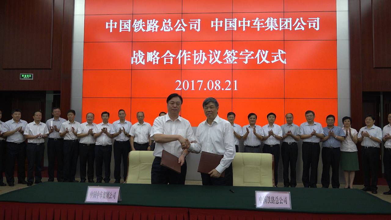 2017年8月21日,中國(guó)鐵路總公司與中國(guó)中車集團(tuán)公司在京簽署戰(zhàn)略合作協(xié)議,雙方確定在軌道交通領(lǐng)域建立從研發(fā)、設(shè)計(jì)、制造到運(yùn)用、維修全壽命周期,從資源共享到資本開發(fā),從國(guó)內(nèi)到國(guó)際全方位的新型戰(zhàn)略合作關(guān)系,共同提升鐵路在現(xiàn)代交通運(yùn)輸體系中的地位,共同促進(jìn)鐵路改革與發(fā)展。